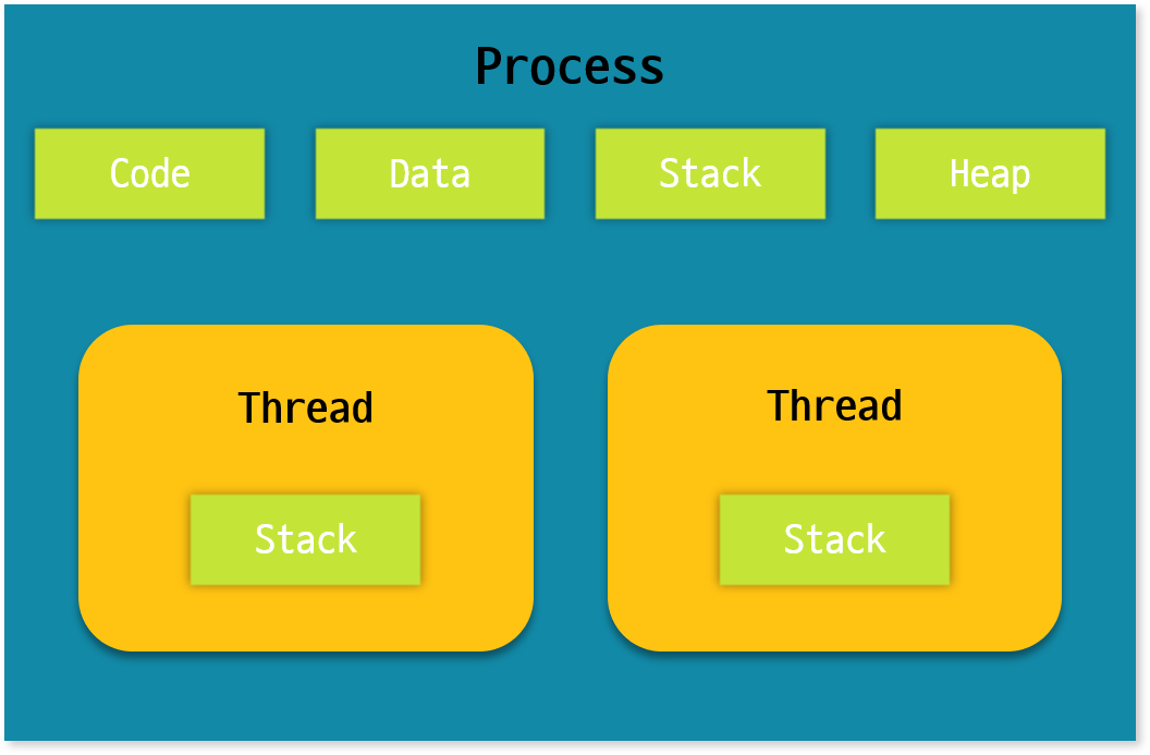 - 각 스레드는 각자 레지스터 집합(PC 레지스터 포함)과 스택을 가진다.